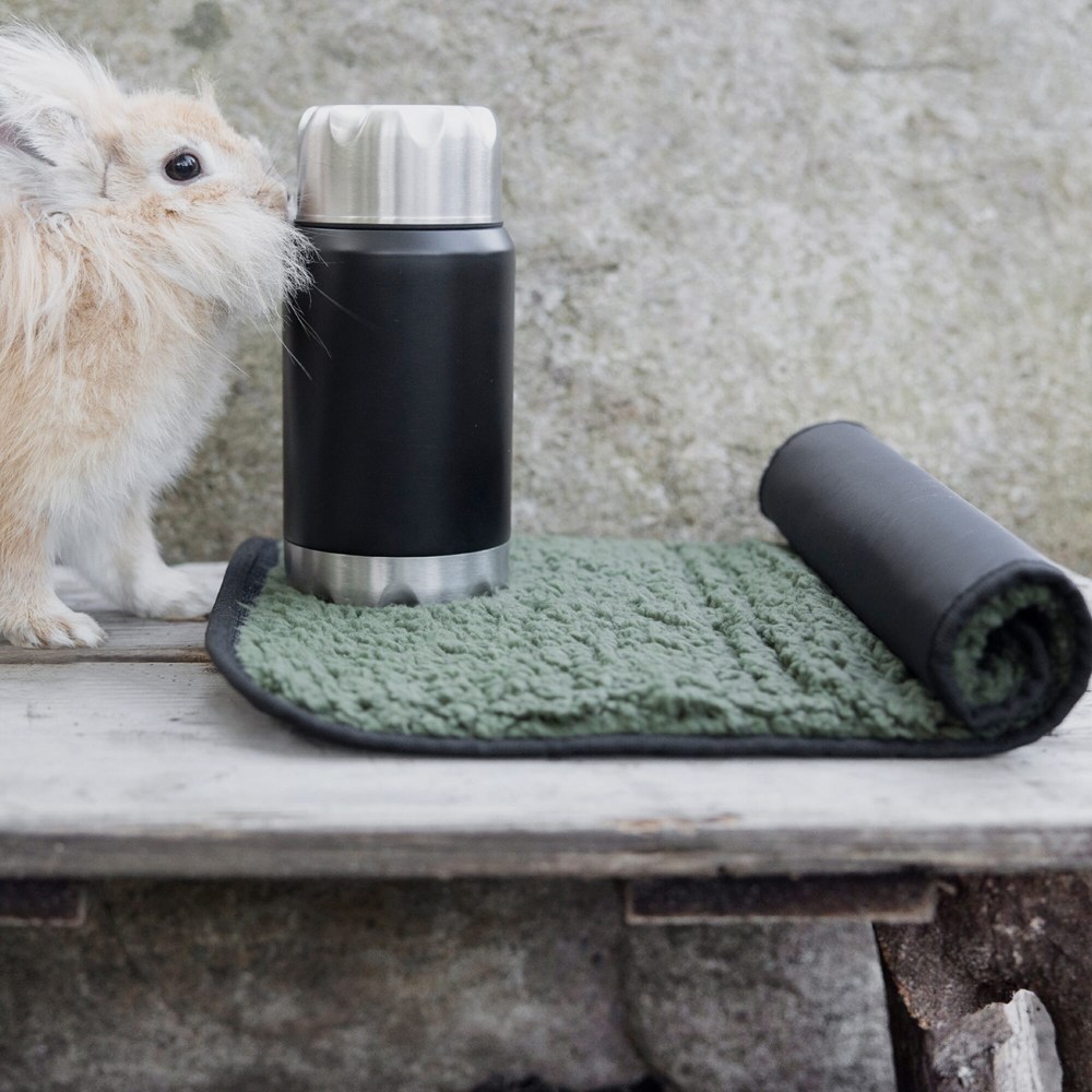 Kleine, praktische Sitzmatte mit wasserabweisender Rückseite und Klettverschluss, die sich leicht und platzsparend zusammenrollen lässt. Weiche, warme Vorderseite aus Lammfellimitat. Perfekt für einen Tag im Park oder am Strand.