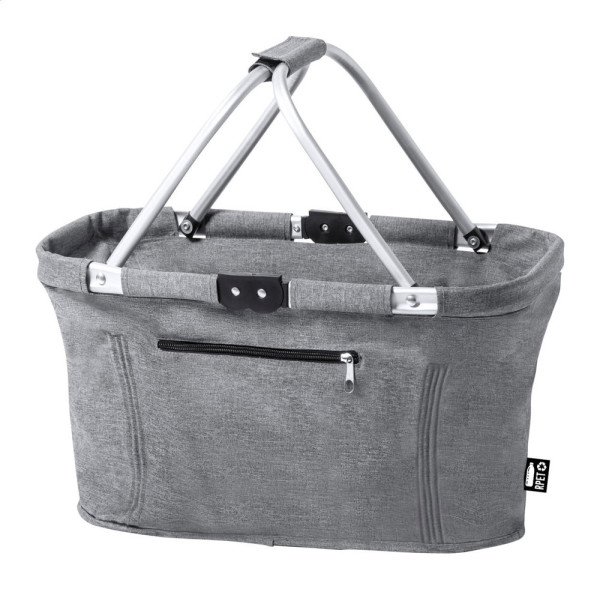 Faltbarer Picknick-Korb aus 600D RPET Polyester mit Aluminiumrahmen, Reißverscluss-Seitentasche und RPET-Label.