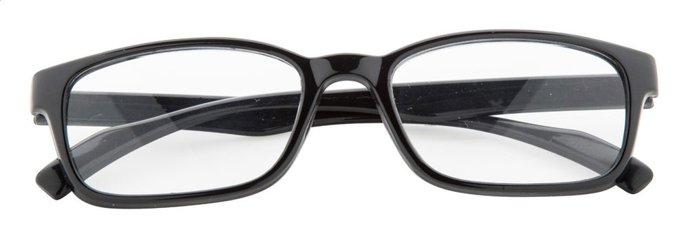 Lesebrille mit +1,5 Dioptrien, Material: Kunststoff. In Softshell Etui.
