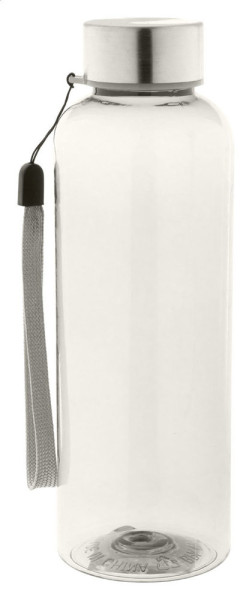 Trinkflasche aus RPET-Kunststoff (BPA-frei) mit Edelstahldeckel und Trageschlaufe. Füllmenge: 500 ml. Nicht geeignet für kohlensäurehaltige Getränke.