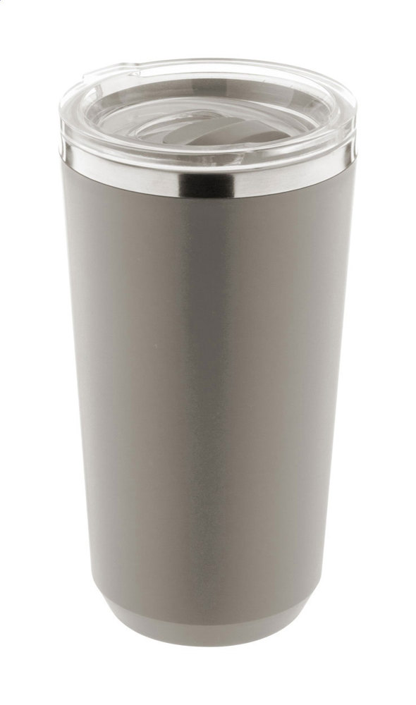 Doppelwandiger Thermobecher aus Edelstahl mit Überzug aus PP-Kunststoff und Trinkdeckel. Füllmenge: 500 ml.