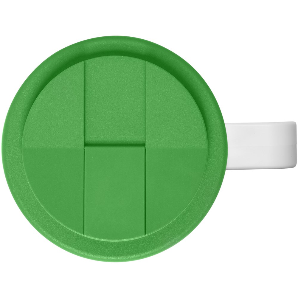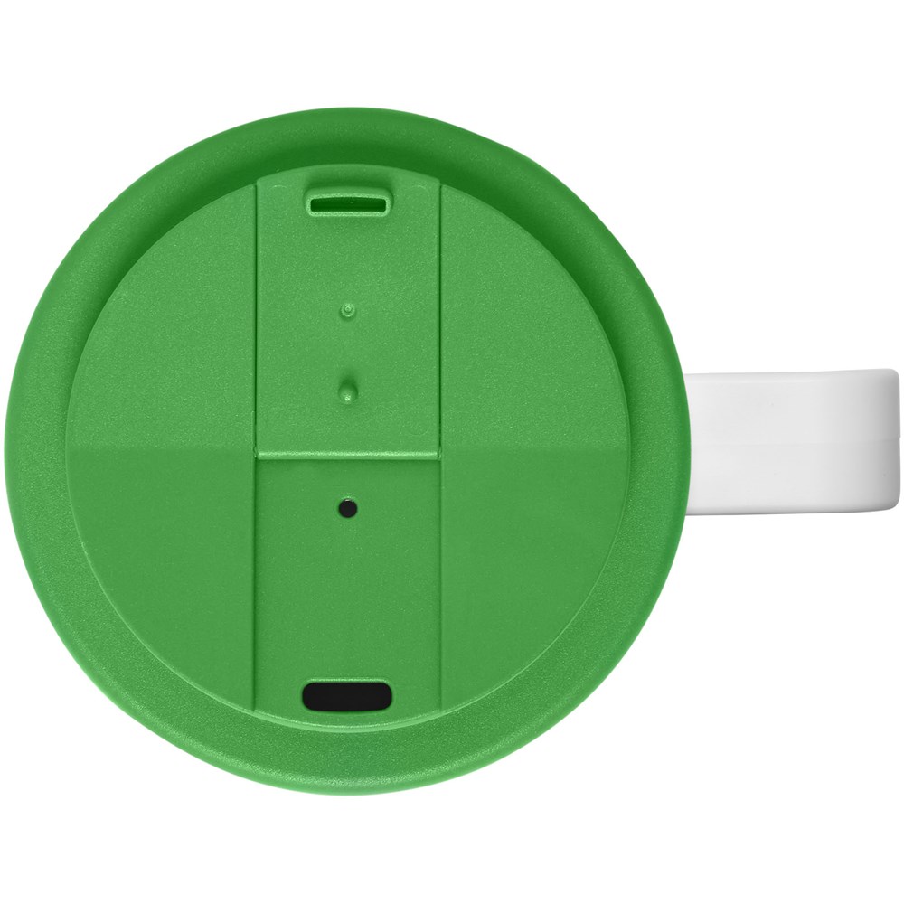 Doppelwandiger Isolierbecher mit aufschraubbarem, auslaufsicherem Deckel. Die äußere Schicht des Bechers ist aus recyceltem Kunststoff hergestellt. Der Becher verfügt über ein vollfarbiges, umlaufendes Design, das an das Produkt angepasst ist – für Strapazierfähigkeit und Haltbarkeit. EN12875-1 konform; spülmaschinen- und mikrowellenfest. Trinköffnung mit Clip verhindert auslaufen und schließt ohne Silikon. Das Fassungsvermögen beträgt 350 ml. Mischen und kombinieren Sie Farben, um Ihren perfekten Becher zu kreieren. Hergestellt in Großbritannien. Verpackt, in einer weißen Geschenkschachtel. BPA-frei. EN12875-1-konform, spülmaschinen- und mikrowellengeeignet.