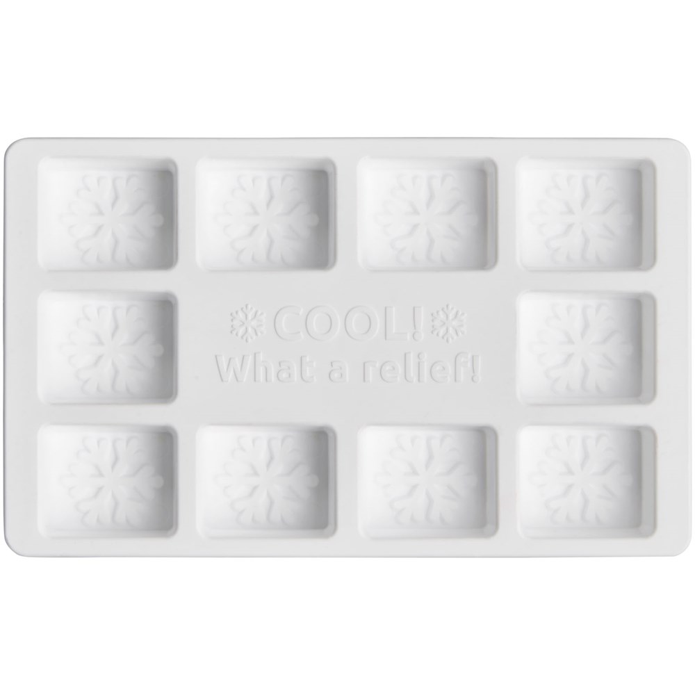 Dieser Eiswürfelbehälter bietet eine neuartige Möglichkeit, Ihr Logo oder Ihre Botschaft auf einem sehr nützlichen Produkt zu präsentieren. Ihre Botschaft kann im zentralen Bereich und/oder am Boden jeder einzelnen Würfelform durch Reliefprägung angebracht werden, um eine fühlbare Oberfläche zu schaffen.