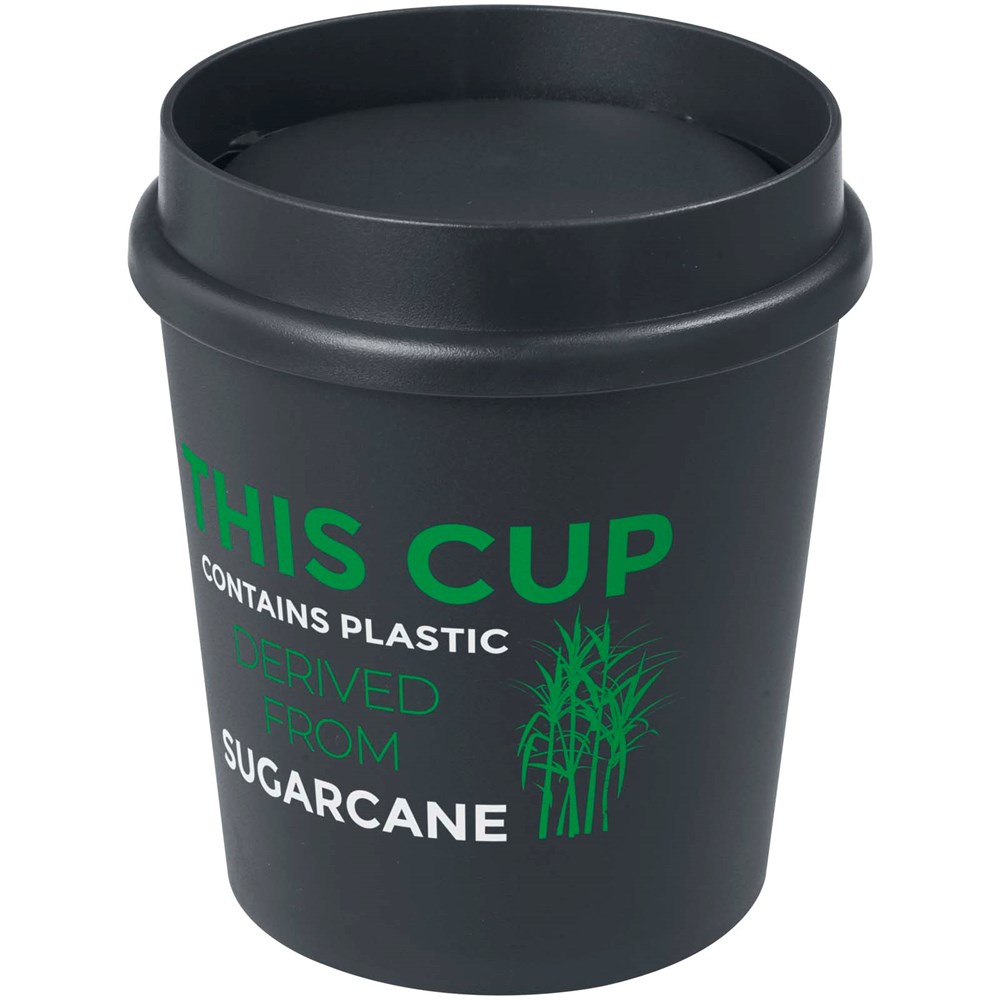 Americano® Switch Renew Einwandiger Becher mit einem Fassungsvermögen von 200 ml. Der innovative 360°-Deckel ermöglicht es Ihnen, von jeder Seite des Bechers zu trinken, und verstärkt das Aroma Ihres gewählten Getränks. Der Becher enthält 25 % Kunststoff, der aus Zuckerrohr gewonnen wird, wodurch der Bedarf an neuem Kunststoff reduziert wird. Der Deckel und der Becher sind silikonfrei, spülmaschinenfest, mikrowellengeeignet und BPA-frei. Als Teil der Americano® Switch-Familie können Sie Ihren Becher durch Hinzufügen eines Deckels und eines Griffs nach Belieben individuell gestalten. Hergestellt in UK. Verpackt in einem recycelten PE-Kunststoffbeutel.