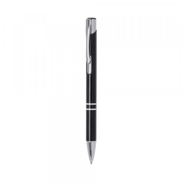 Origineller Kugelschreiber mit Druckknopfmechanismus in elegantem zweifarbigen Design. Gestanzter Aluminiumschaft mit glatter Oberfläche in verschiedenen Farben. Origineller Clip, Ringe und Spitze in Silber. Mit Jumbo-Mine und blauer Tinte.