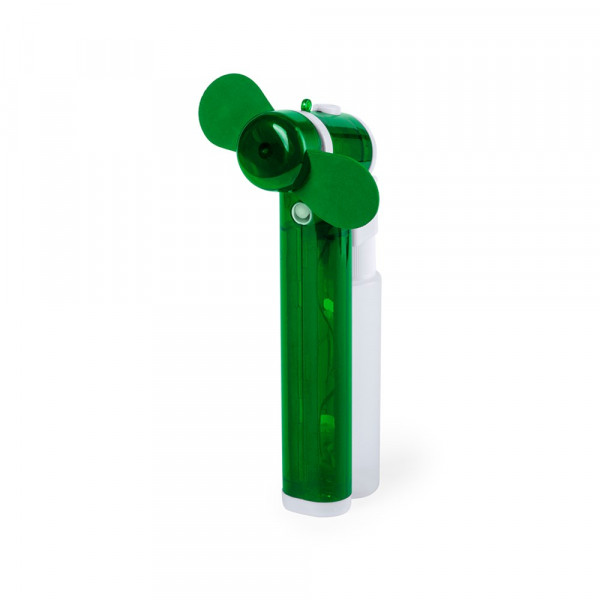 Ventilator mit Spray-Funktion und 35 ml Fassungsvermögen. Erhältlich in verschiedenen lebendigen Farben. Mit transparentem Körper und Propellern aus EVA-Kunststoff. Batteriebetrieben - 2 x AA nicht inklusive.