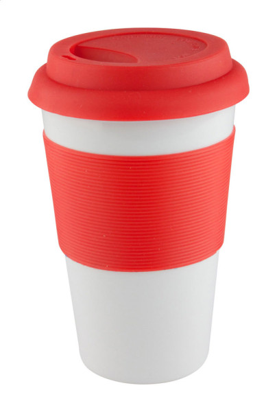 Keramikbecher mit Deckel und Griff aus Silikon, Füllmenge: 400 ml. mehr