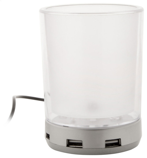 Schtifteköcher aus ABS-Kunststoff mit USB Hub (USB 2.0, 4 Ports) und blauem Licht. Bedruckung... mehr