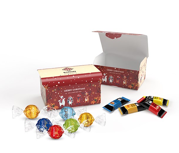 Echte Schätze verbergen sich in dieser hochwertigen Schatztruhe aus FSC®-zertifiziertem Papier. Zartschmelzende Schokolade von Lindt in unterschiedlichen Geschmacksrichtungen wird jedes Schokoladenherz erfreuen. Die Truhe ist rundum individuell veredelbar.