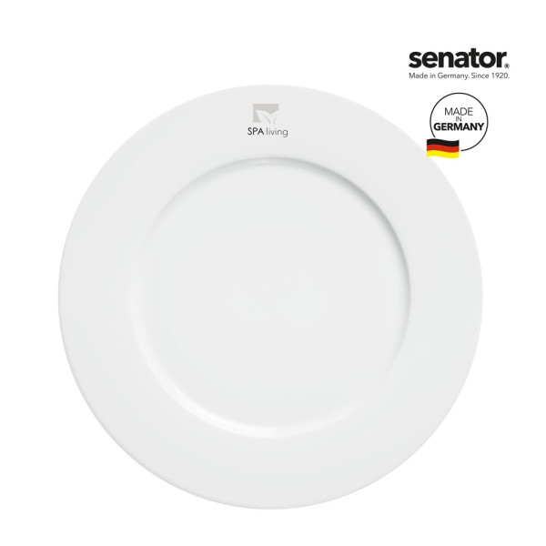senator® Fancy Speiseteller, Porzellan-Speiseteller, hochglänzend weiß, Abmessungen Durchmesser Speiseteller: ca. 263 mm - Perfekt für die Kundenbewirtung, ob im Meetingraum, Wartebereich, Bistro, Kantine u.ä.