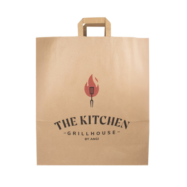 Papier Tragetaschen mit flach gefalteter Griff braun XXL