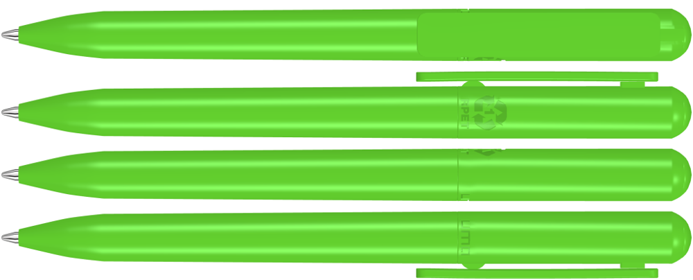 Drehkugelschreiber aus recyceltem PET-Material mit gedeckt glänzendem Gehäuse.