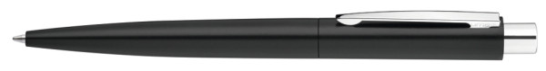 Metall-Druckkugelschreiber mit matt lackiertem Gehäuse aus recyceltem Aluminium. Metallclip und Drücker glanzverchromt.