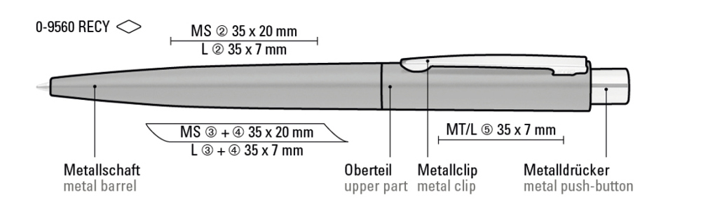 Metall-Druckkugelschreiber mit matt lackiertem Gehäuse aus recyceltem Aluminium. Metallclip und Drücker glanzverchromt.