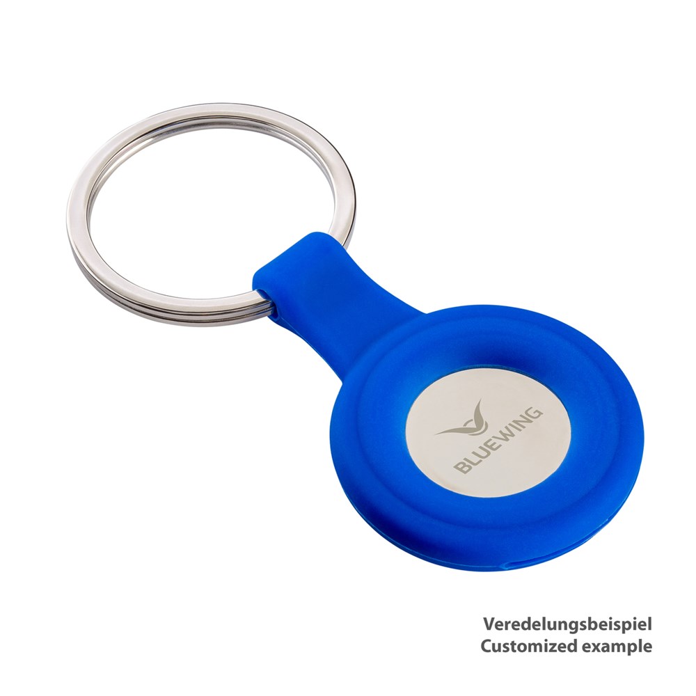 Der blaue Schlüsselanhänger mit rundem Silikonrand zeichnet sich einerseits durch seine angenehme Haptik und außerdem durch den praktischen Caddy Chip aus. Der Einkaufswagenchip aus Metall kann aus dem Silikonring rausgedrückt werden und nach Gebrauch wieder am unteren Rand des Silikonrings eingeschoben werden. Mit einem stabilen, metallenen Split-Ring lassen sich Ihre Schlüssel in bewährter Manier aufnehmen. Veredelbar ist der Einkaufswagenchip mit einer edlen Lasergravur. So bleibt Ihr Logo am Schlüsselbund immer präsent.