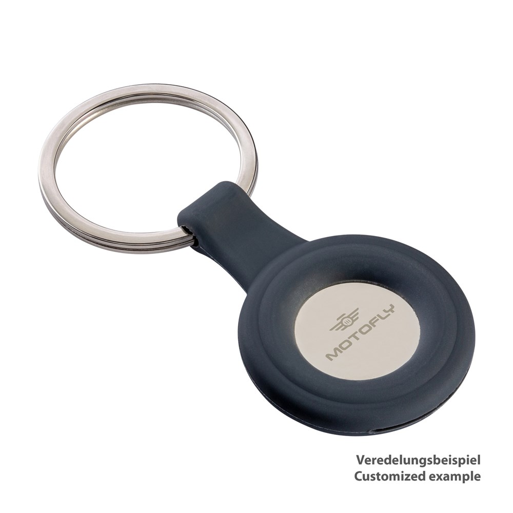 Der dunkelgraue Schlüsselanhänger mit rundem Silikonrand zeichnet sich einerseits durch seine angenehme Haptik und außerdem durch den praktischen Caddy Chip aus. Der Einkaufswagenchip aus Metall kann aus dem Silikonring rausgedrückt werden und nach Gebrauch wieder am unteren Rand des Silikonrings eingeschoben werden. Mit einem stabilen, metallenen Split-Ring lassen sich Ihre Schlüssel in bewährter Manier aufnehmen. Veredelbar ist der Einkaufswagenchip mit einer edlen Lasergravur. So bleibt Ihr Logo am Schlüsselbund immer präsent.