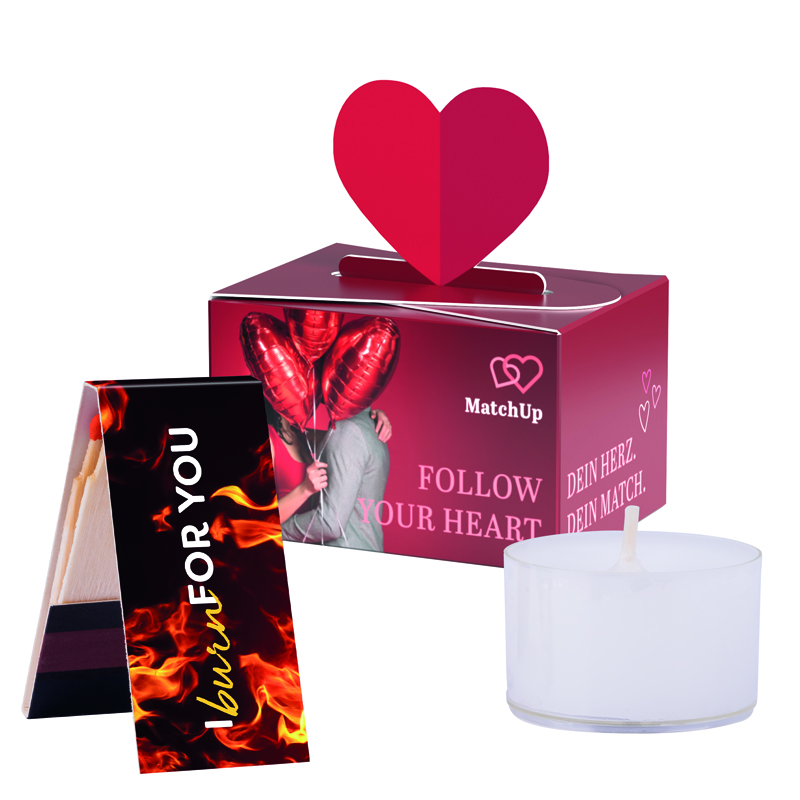 Kleine Werbebox aus weißem Karton, Verschluss mit einem aufgestellten Herz, Box individuell... mehr