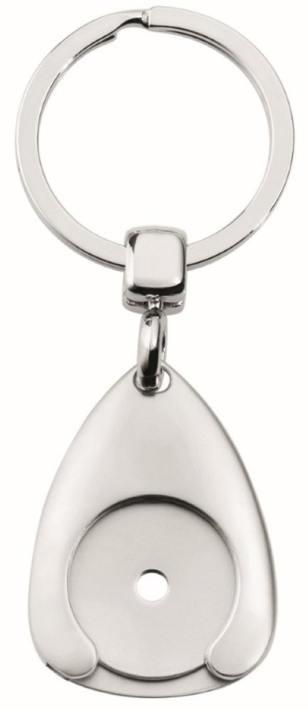 EK-Chiphalter in Mattsilber mit Gravur-/ Domingplakette. Auch kompatibel mit 1€ / 50 Cent Münze, Federmechanismus, VPE 200. Chip, 30mm Schlüsselring, Designkarton