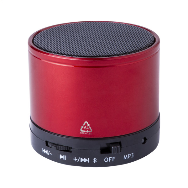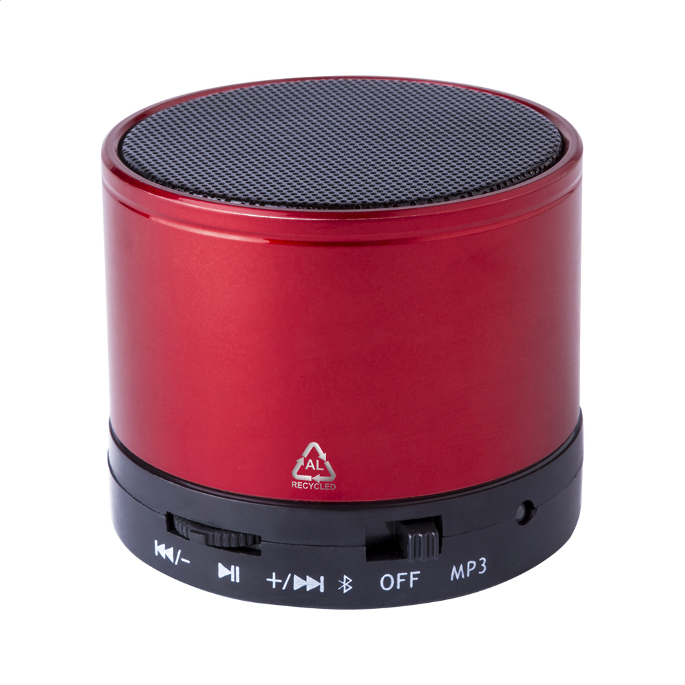 Kabelloser Lautsprecher in einem Gehäuse aus recyceltem Aluminium und recyceltem ABS. Mit Radio, MP3-Player, Freisprechfunktion und eingebautem, wiederaufladbarem Akku (300 mAh). Inklusive USB-Ladegerät und Aux-In-Kabel.