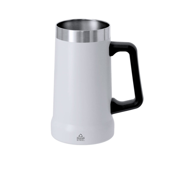 Kanne mit 700 ml Kapazität, hergestellt aus recyceltem Edelstahl mit doppelter Wand. In zwei Farben gestaltet, mit ergonomischem schwarzen Transportgriff aus strapazierfähigem PP. BPA-frei. Mit dem Markenzeichen von recyceltem Edelstahl.Edelstahl ist eines der gefragtesten Materialien und kann fast überall gefunden werden, von Alltagsprodukten bis hin zu großen Konstruktionen. Mit unzähligen Eigenschaften, darunter Haltbarkeit und ein hohes Maß an Wiederverwendbarkeit, macht es zu einer geschätzten Alternative in nachhaltigen Lösungen. Richtig behandelt, ermöglicht es die Gewinnung neuer Ressourcen mit unendlichen Nutzungsmöglichkeiten.