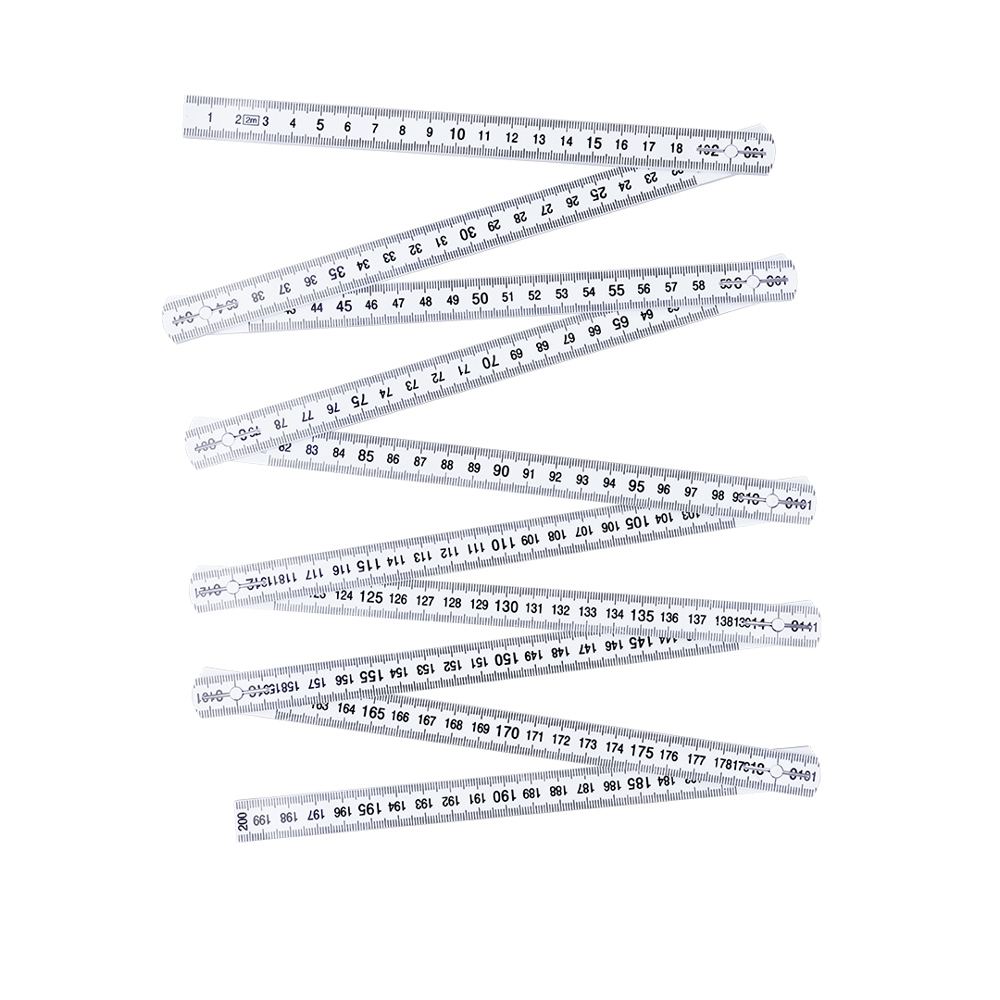 Faltbares 2 Meter Maßband aus widerstandsfähigem Fiberglas. Mit sichtbarer schwarzer Skala in Zentimetern auf beiden Seiten. Mit verstellbaren Positionen auf 90°, 180° und 270° für mehr Vielseitigkeit.