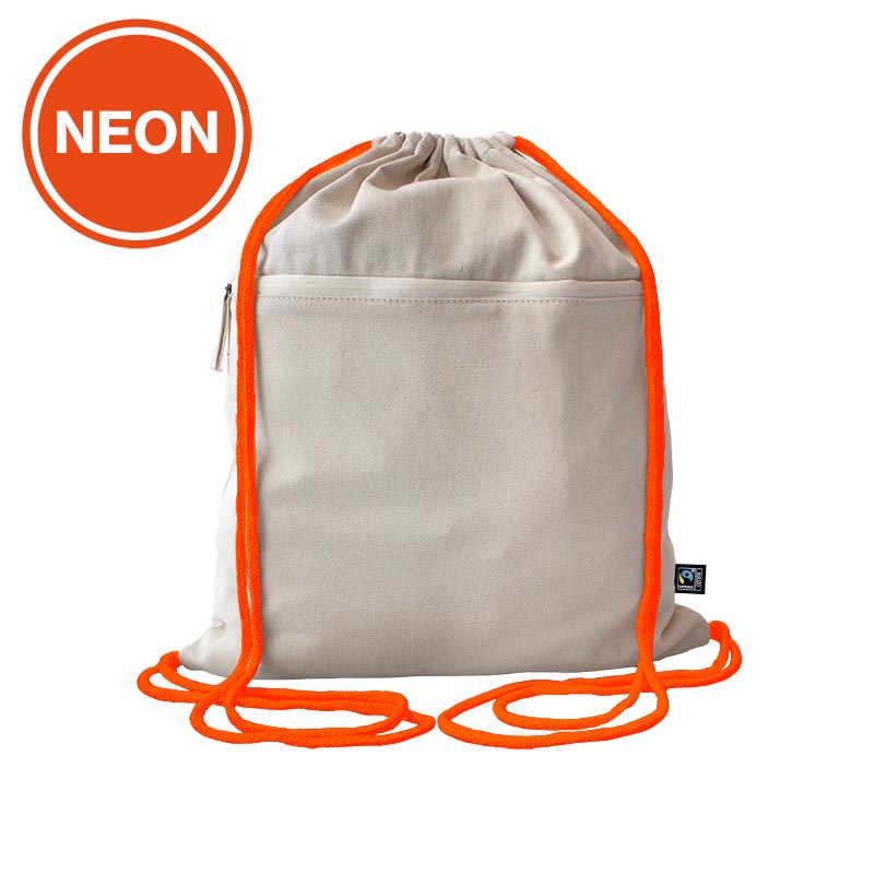 Fairtrade Baumwollrucksack Toni, Kordelfarbe neon orange