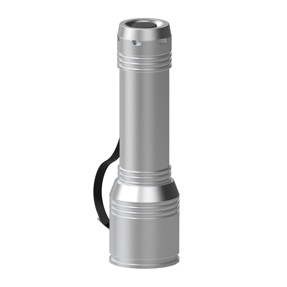 Diese leistungsstarke und wiederaufladbare Taschenlampe aus Aluminium ist ein Eigendesign für die Marke REEVES aus dem Hause REFLECTS. Die Taschenlampe ist silbern oder schwarz eloxiert erhältlich, hat ein schwarzes Griffband und kann mit einem Griff-Sleeve aus Silikon und/oder einem Silikonring kombiniert werden. Die Silikonkomponenten sind in vielen verschiedenen Farben ab Köln verfügbar. Selbstverständlich ist sie auch ohne Silikon-Komponenten erhältlich.