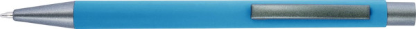 Kugelschreiber mit Softtouch-Oberfläche. Der Knopf, der Clip und Spitze sind farblich zueinander passend. Kann nur in Schwarz, Weiß, Silber und Gold bedruckt werden. Mit blauer Mine.