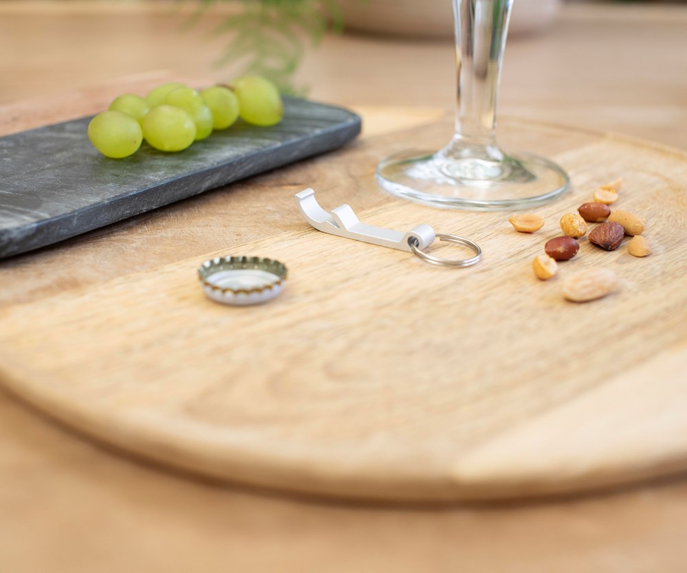 Kapselheber aus Aluminium mit Metall-Schlüsselring.