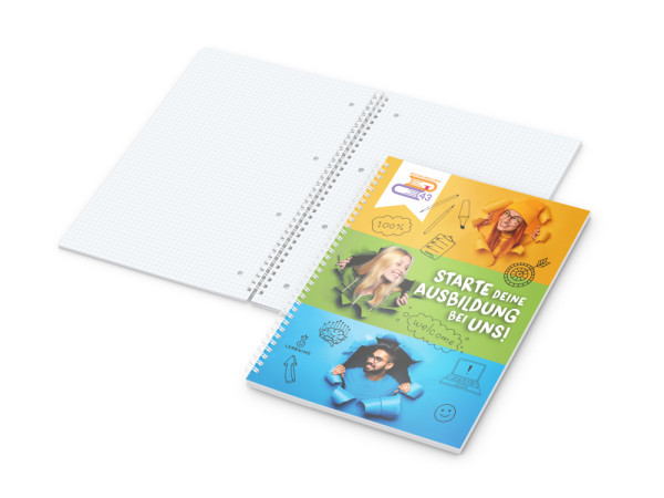 Der Collegeblock Wire-O Bestseller bietet ein klassisches Design mit moderner Funktionalität. Mit individuell bedruckbarem Deckblatt, hochwertiger Wire-O-Bindung und Mikroperforation ist er ein vielseitiges Werbemittel für den Büroalltag, Messen oder Kundengeschenke.