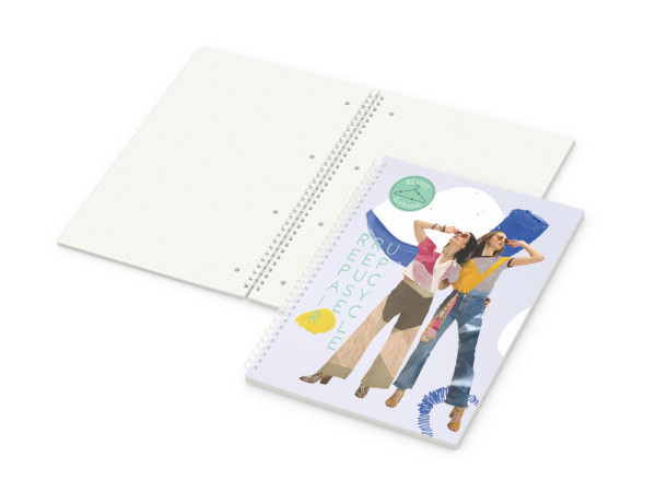Der Collegeblock Wire-O green+blue vereint Nachhaltigkeit und Funktionalität. Mit Recyclingpapier, zertifiziert mit dem Umweltzeichen „Blauer Engel“, und einer hochwertigen Wire-O-Bindung ist er das ideale umweltfreundliche Werbemittel.