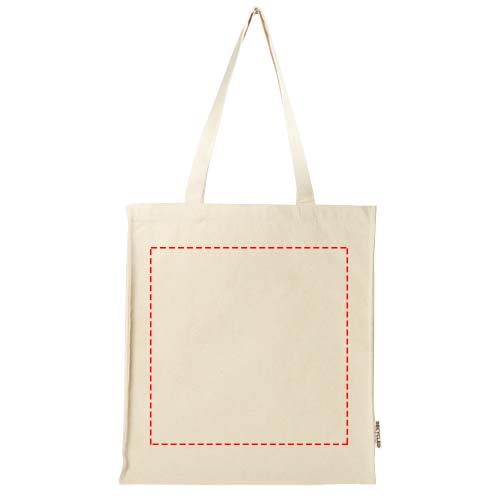 Die Florida Tragetasche mit Seitenfalten wird aus 100 % GRS-zertifizierter, Recyclingbaumwolle mit einem Gewicht von 270 g/m² hergestellt und ist eine verantwortungsbewusste und nachhaltige Wahl für den täglichen Bedarf. Mit einem Fassungsvermögen von bis zu 14 Litern und 30 cm langen Griffen ist sie ideal für den mühelosen Transport von Lebensmitteln, Büchern oder Alltagsgegenständen.