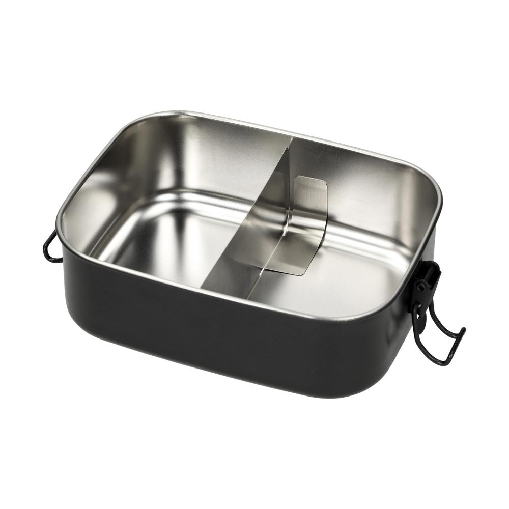 Ideal für's Mittagessen oder Zwischendurch. Die Vorratsdose aus Edelstahl ist nach der Nutzung immer wieder verwendbar, was sie zur perfekten umweltfreundlichen Alternative zu Alu- und Frischhaltefolien macht und besitzt eine herausnehmbare Trennschale. Sie verfügt über einen Dichtungsring und robuste Klemmbügel an den Seiten. Nicht für flüssige Lebensmittel geeignet.