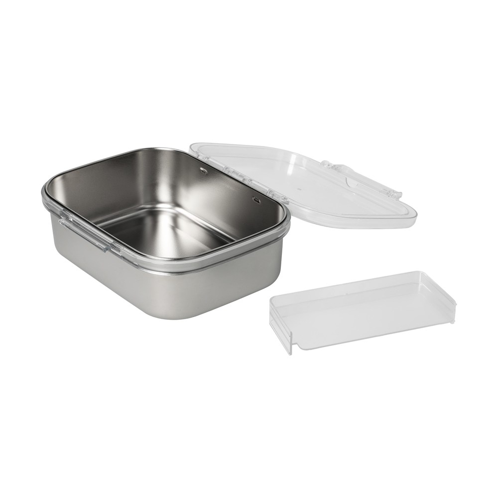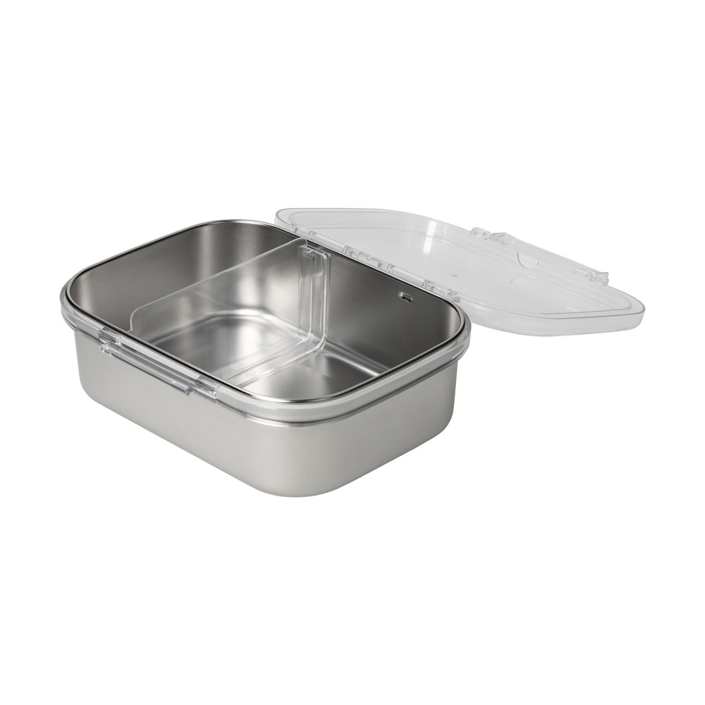 Ideal für's Mittagessen oder Zwischendurch. Die Vorratsdose „Storage“ aus Edelstahl ist nach der Nutzung immer wieder verwendbar, was sie zur perfekten umweltfreundlichen Alternative zu Alu- und Frischhaltefolien macht. Die Trennwand aus Tritan, die die Box in zwei Hälften teilt, sorgt für die sichere Trennung verschiedener Lebensmittel. In dem Tritandeckel der Dose befindet sich eine Silikondichtung.