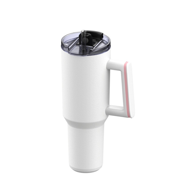 Der trendige Becher – jetzt in einer handlicheren Version! Dieser 900 ml Trendbecher mit Henkel, Deckel und Strohhalm ist farblich konfigurierbar. Machen Sie ihn zu einem optischen Highlight mit höherem Marken-Wiedererkennungswert: Kombinieren Sie den Becher mit einem farbigen Silikon-Accessoire am Henkel und optional mit einem farbigen Silikon-Sleeve am schlanken, unteren Teil des Bechers.