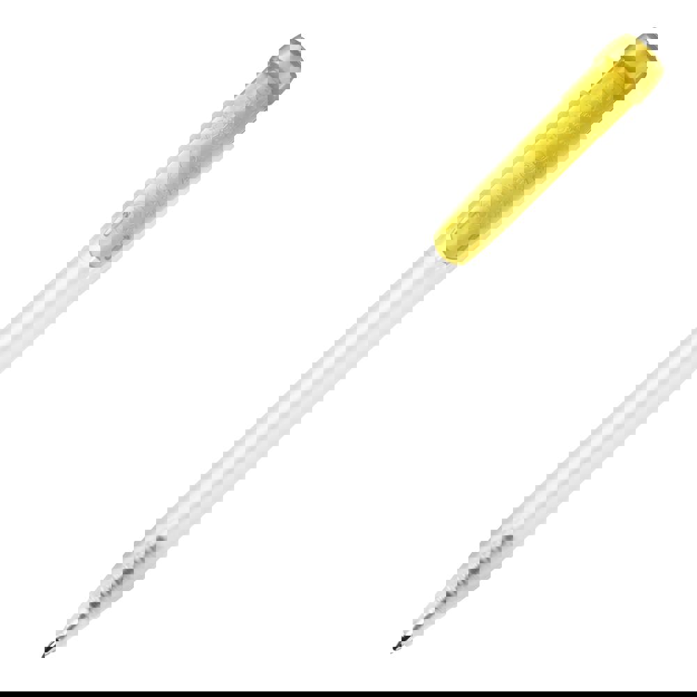 Frosty Ingeo TM Kugelschreiber mit transparentem farbigem Clip. Ab 5.500 Stück sind eigene Farbkombinationen möglich. Hergestellt aus PLA, einem biologisch abbaubarem Material. Dies bedeutet, dass es eine gute und umweltfreundliche Wahl als Werbeartikel ist. Ausgestattet mit einer blau schreibenden X20-Refill-Mine. Der Druckkugelschreiber besteht aus ABS und wird in Europa hergestellt. Ab einer Abnahmemenge von 5.000 Stück sind eigene Farbkombinationen möglich.