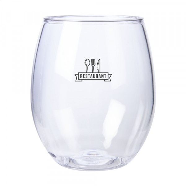 Bauchiges Wasser- oder Weinglas aus Kunststoff, der Marke HappyGlass. Hergestellt aus transparentem und BPA-freiem Copolyester Tritan Kunststoff. Leicht und sehr robust. Perfekt geeignet für (Sport)Veranstaltungen, Festivals, Konzerte, bei denen Getränke meist nur in Plastikbechern angeboten werden. Dieses hochwertige Glas kann mehrmals genutzt werden. Dieses Produkt ist spülmaschinenfest. Um den Aufdruck zu erhalten, wird Waschen von Hand empfohlen. Fassungsvermögen 400 ml.