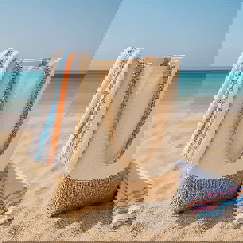 Strapazierfähige Tasche mit Vorder- und Rückwand aus Baumwoll-Canvas und Bodenfalte aus Jute - alles 320 g/m². Oeko-Tex® zertifiziert für sichere, geprüfte Materialien. Eine praktische und stilvolle Option für den Einzelhandel, Veranstaltungen oder den täglichen Gebrauch.