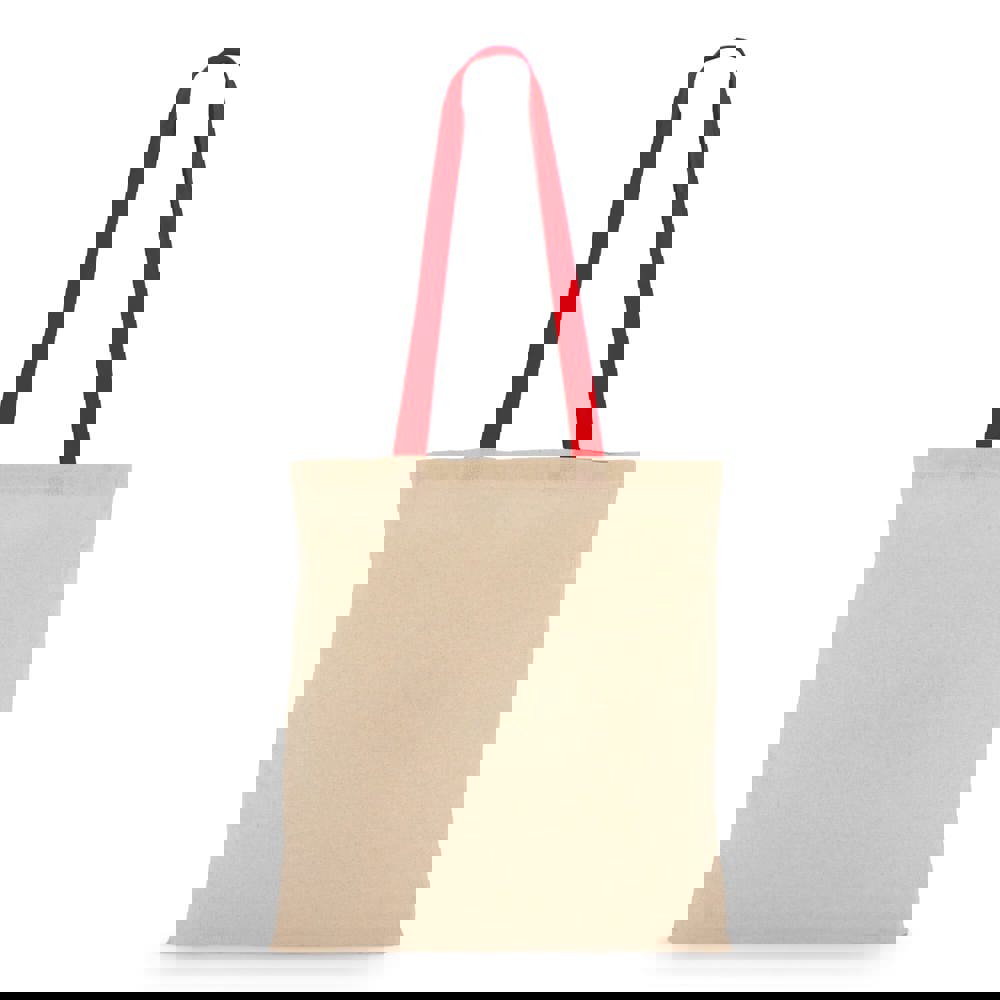 Klassische Tragetasche aus 140 g/m² Baumwolle mit natürlichem Körper und kontrastfarbenen Griffen. Lange Griffe für bequemes Tragen über der Schulter. Oeko-Tex®-zertifiziert. Ideal für Veranstaltungen, den Einzelhandel oder den täglichen Gebrauch.
