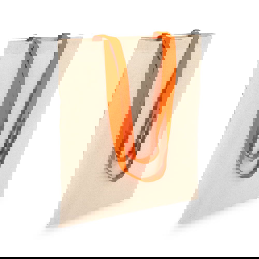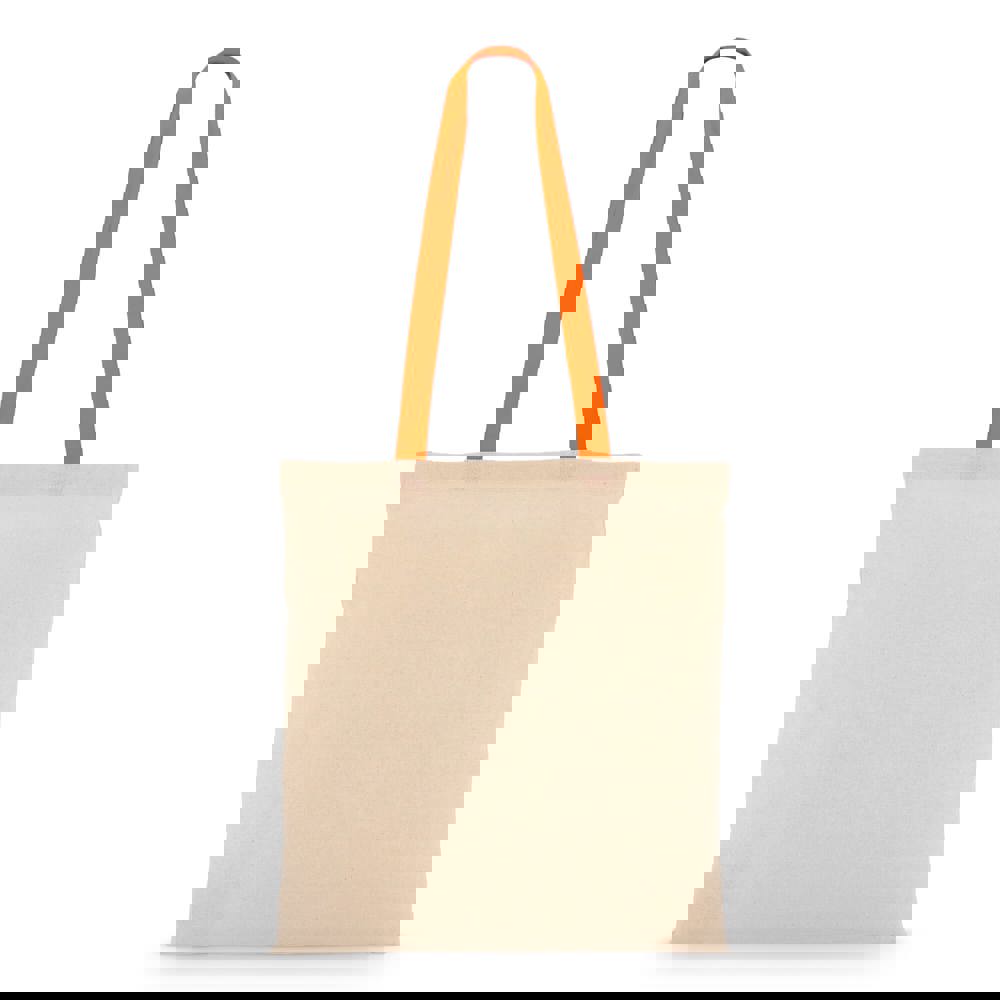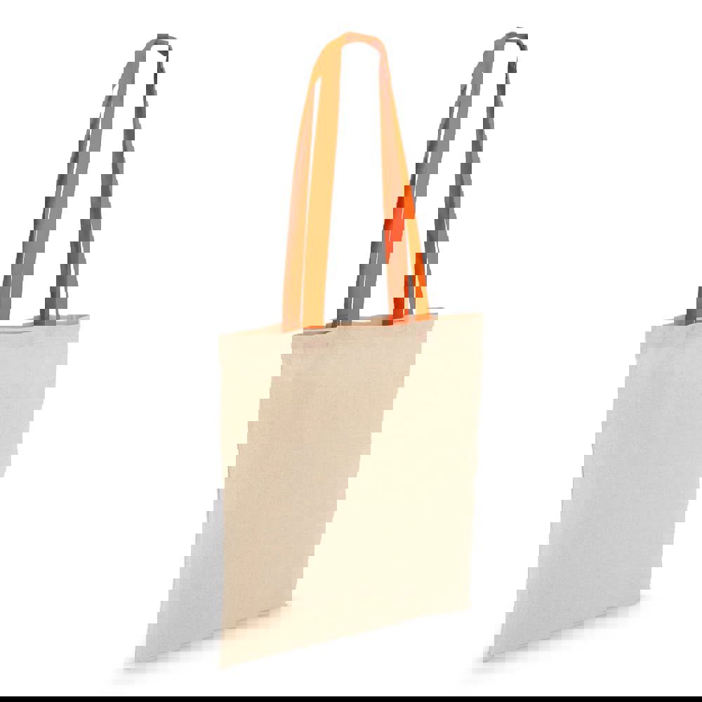 Klassische Tragetasche aus 140 g/m² Baumwolle mit natürlichem Körper und kontrastfarbenen Griffen. Lange Griffe für bequemes Tragen über der Schulter. Oeko-Tex®-zertifiziert. Ideal für Veranstaltungen, den Einzelhandel oder den täglichen Gebrauch.
