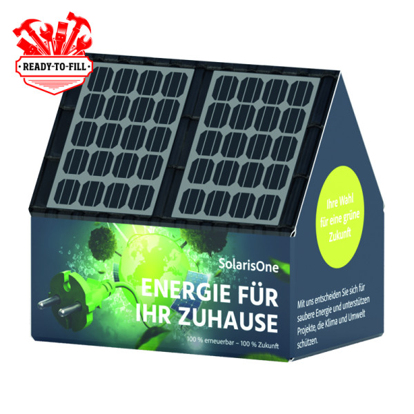 Haus Verpackung aus weißem Karton, individuell bedruckt. Inhalt: kundengestelltes Füllgut,... mehr