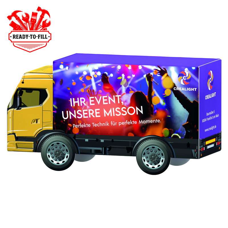 LKW Verpackung aus weißem Karton, individuell bedruckt. Inhalt: kundengestelltes Füllgut,... mehr