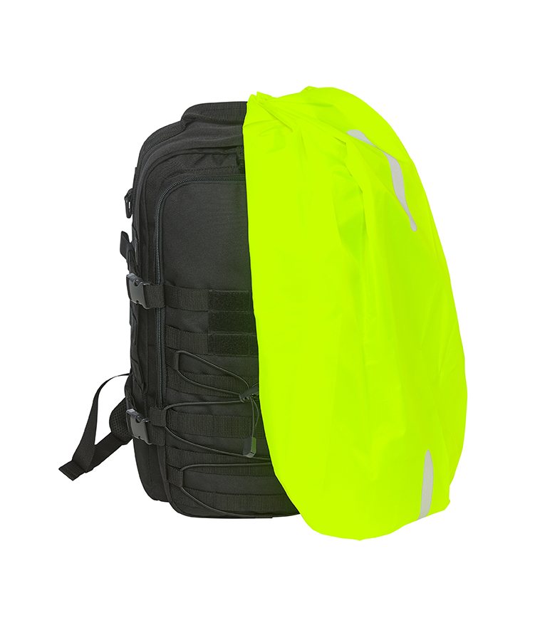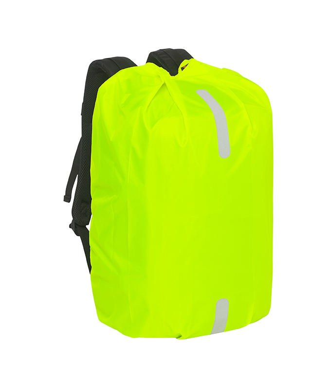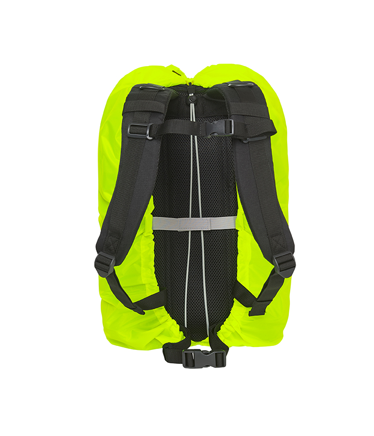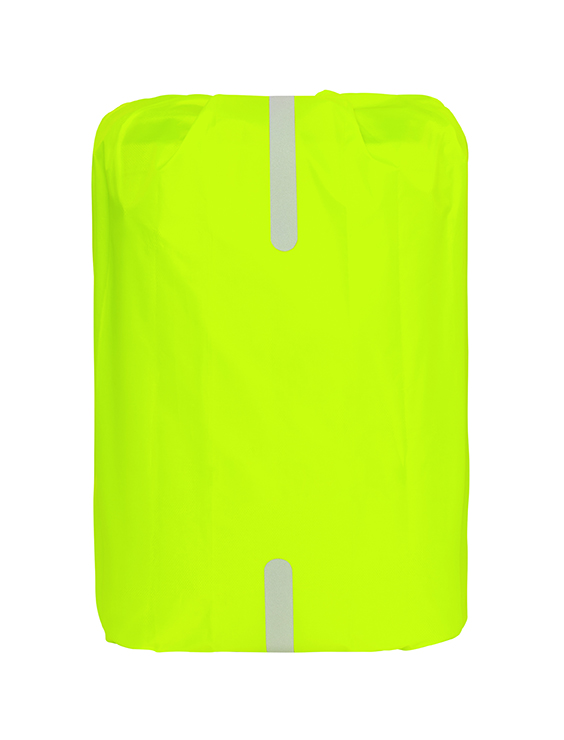 innovative Regenhülle für Rucksäcke; Universalgröße, individuell einstellbar dank elastischem Kordelzug mit Stopper; ideal für Rucksäcke bis 26L Packvolumen; Längs- und Querfixierung für sicheren Halt; neongelb mit Reflexstreifendruck; faltbar und platzsparend verstaubar *keine PSA