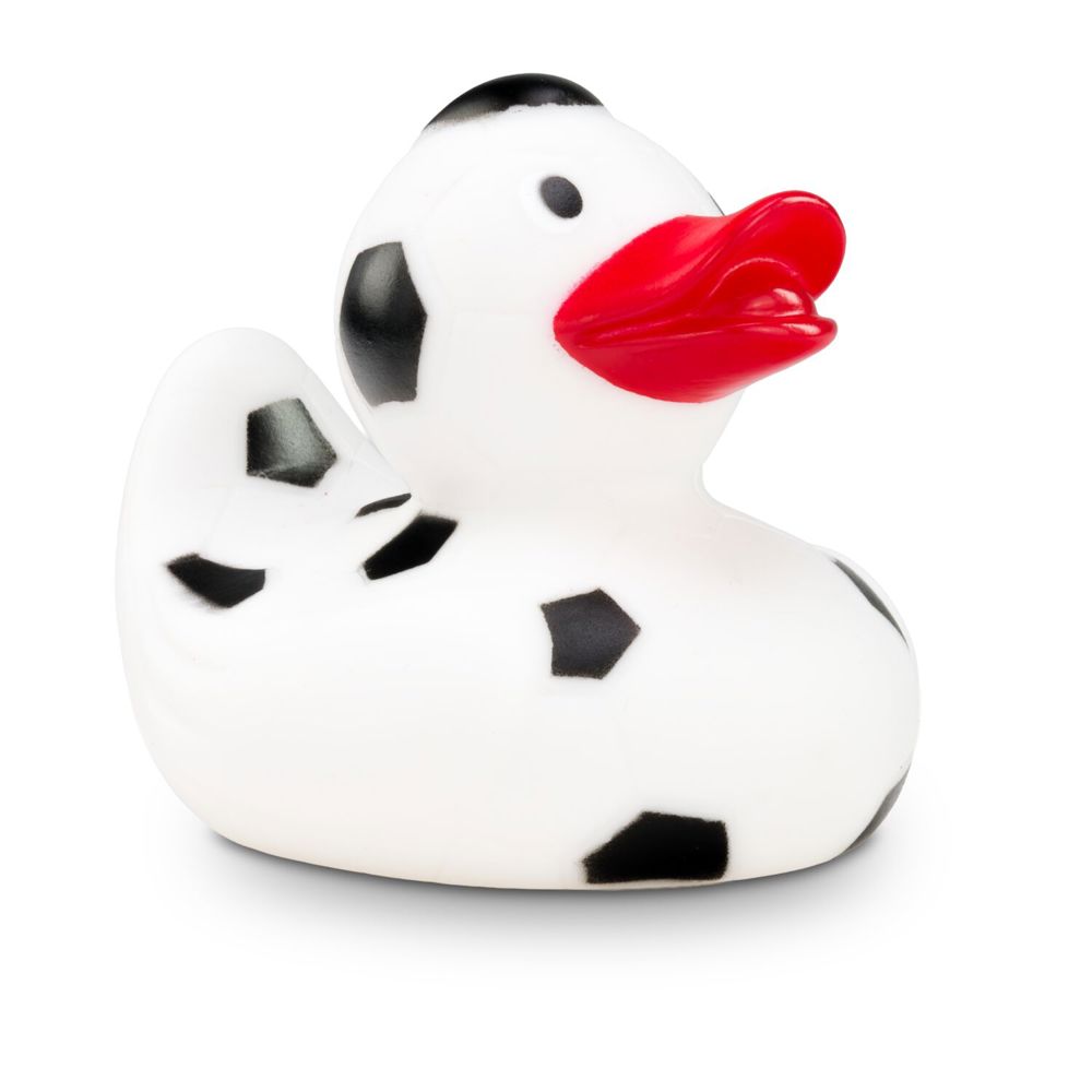 Anpfiff in der Badewanne! Franz Fußball bringt das Spielfeld zu dir nach Hause. Mit seinem schwarz-weißen Körper, der wie ein Fußball gestaltet ist, ist er der perfekte Teamplayer für alle Fußballfans. Größe: ca. 8 cm. Inklusive Quietschventil