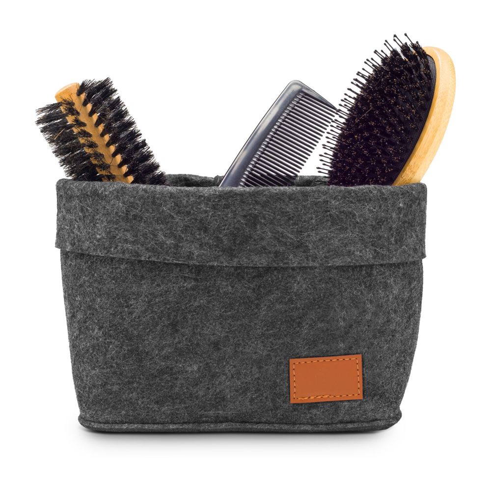 Hochwertiger Korb aus RPET-Filz in elegantem, dunklem Anthrazit, verwendbar als schicker Korb für... mehr