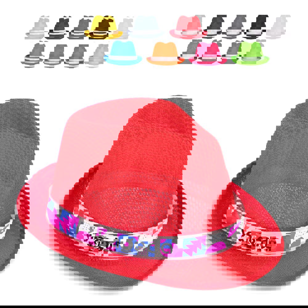 Ein vielseitiger Polyesterhut in einer Vielzahl von Werbe- und leuchtenden Farben. Perfekt für sonnige Tage, bietet er Stil und Sonnenschutz. Das Band ermöglicht eine individuelle Gestaltung.