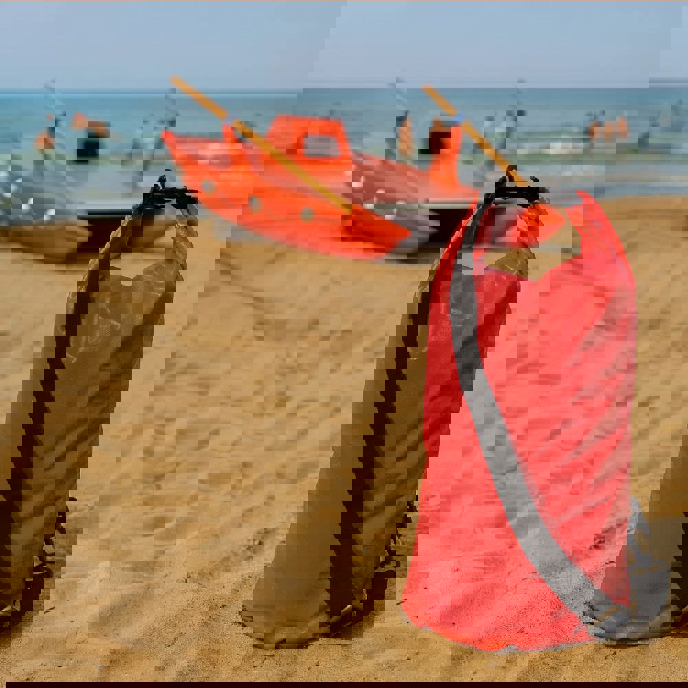 Wasserdichter Seesack, ideal für den Strand, auf einem Boot oder einfach nur für einen Spaziergang durch den Wald. Gefüllt mit Luft bleibt diese Tasche auch in Notfällen schwimmfähig. Mit dem zusätzlichen Ring und den Karabinern kann diese Tasche auch problemlos quer über den Körper getragen werden. Wasserdicht IPX6, geschützt gegen Hochdruckwasserstrahlen aus beliebigem Winkel. Die Tasche darf nicht eingetaucht werden.