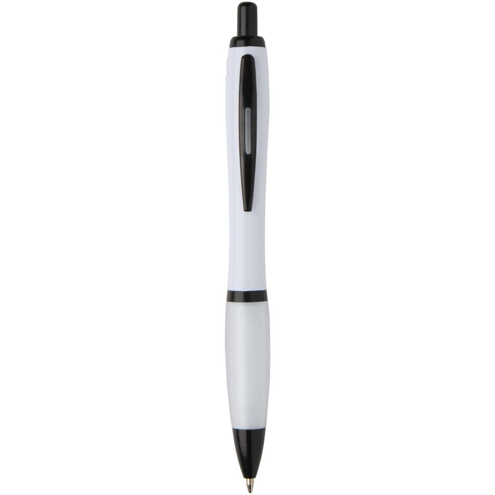 Der Nash Kugelschreiber in der Black Edition hat ein stilvolles, geschwungenes Design mit schwarzen Akzenten und hergestellt aus RCS-zertifiziertem recyceltem Kunststoff zur Reduzierung von Neumaterialien. Dank des schnellen Klickmechanismus ist der Kugelschreiber sofort einsatzbereit. Der weiche Griff verringert die Belastung beim Schreiben. Tintenfarbe: Schwarz. Schreiblänge: 1000 Meter. Schreibspitze: 1,0 mm.