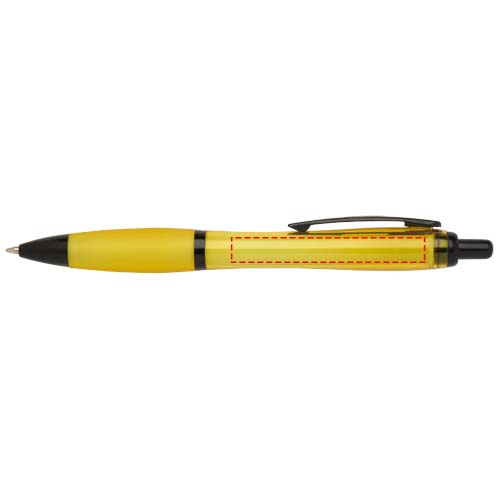 Der Nash Kugelschreiber in der Black Edition hat ein stilvolles, geschwungenes Design mit schwarzen Akzenten und hergestellt aus RCS-zertifiziertem recyceltem Kunststoff zur Reduzierung von Neumaterialien. Dank des schnellen Klickmechanismus ist der Kugelschreiber sofort einsatzbereit. Der weiche Griff verringert die Belastung beim Schreiben. Tintenfarbe: Schwarz. Schreiblänge: 1000 Meter. Schreibspitze: 1,0 mm.