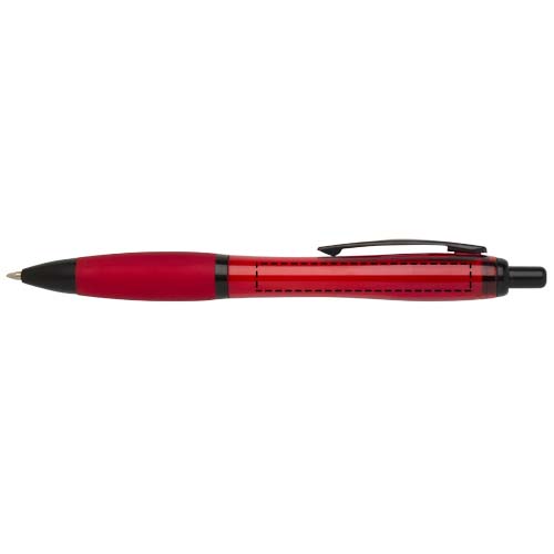 Der Nash Kugelschreiber in der Black Edition hat ein stilvolles, geschwungenes Design mit schwarzen Akzenten und hergestellt aus RCS-zertifiziertem recyceltem Kunststoff zur Reduzierung von Neumaterialien. Dank des schnellen Klickmechanismus ist der Kugelschreiber sofort einsatzbereit. Der weiche Griff verringert die Belastung beim Schreiben. Tintenfarbe: Schwarz. Schreiblänge: 1000 Meter. Schreibspitze: 1,0 mm.
